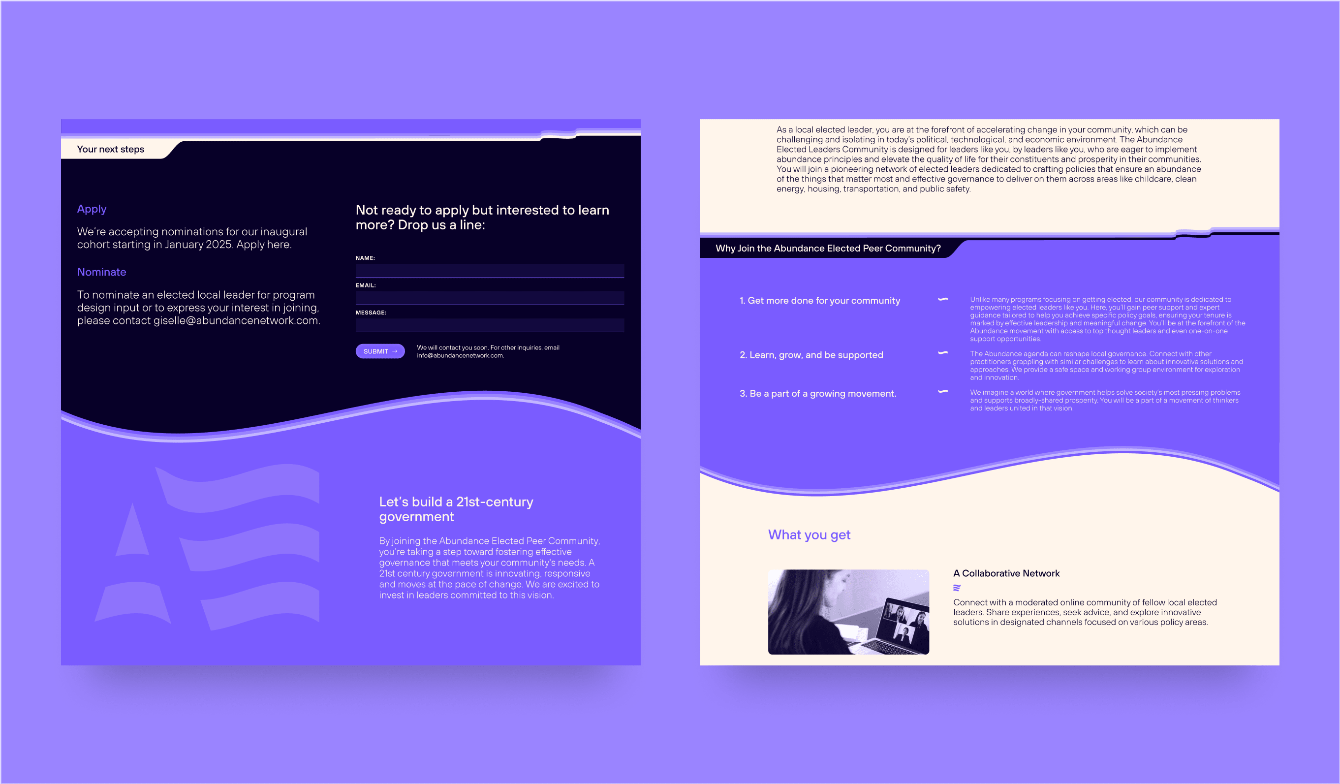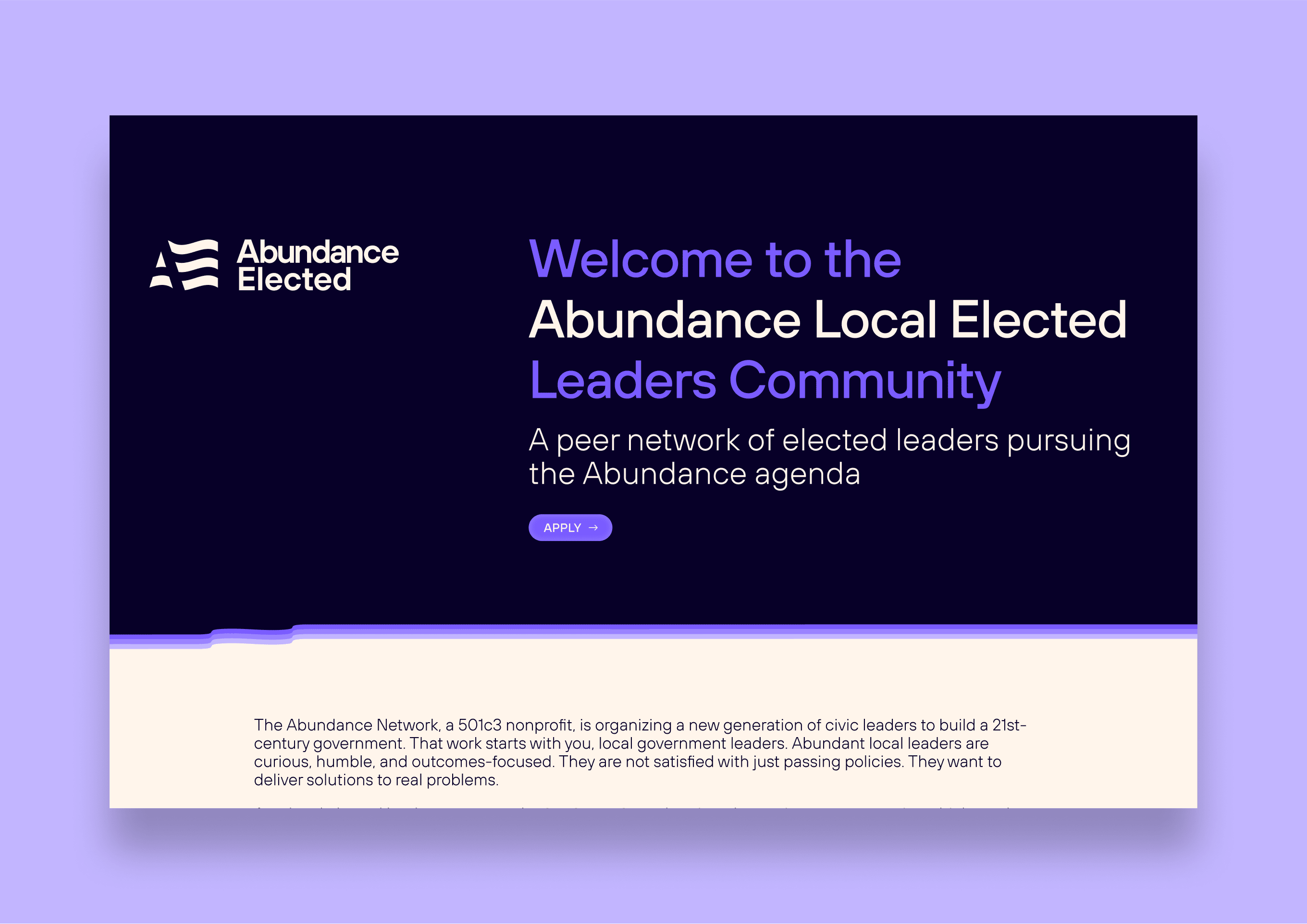 The identity communicates optimism, connection, and action, serving as both a call to arms and a symbol of hope for a new political vision, while maintaining flexibility for local chapters and partner organisations. The brand conveys the expansive potential of the Abundance Agenda and lays the groundwork for a national movement to revitalise the American Dream.