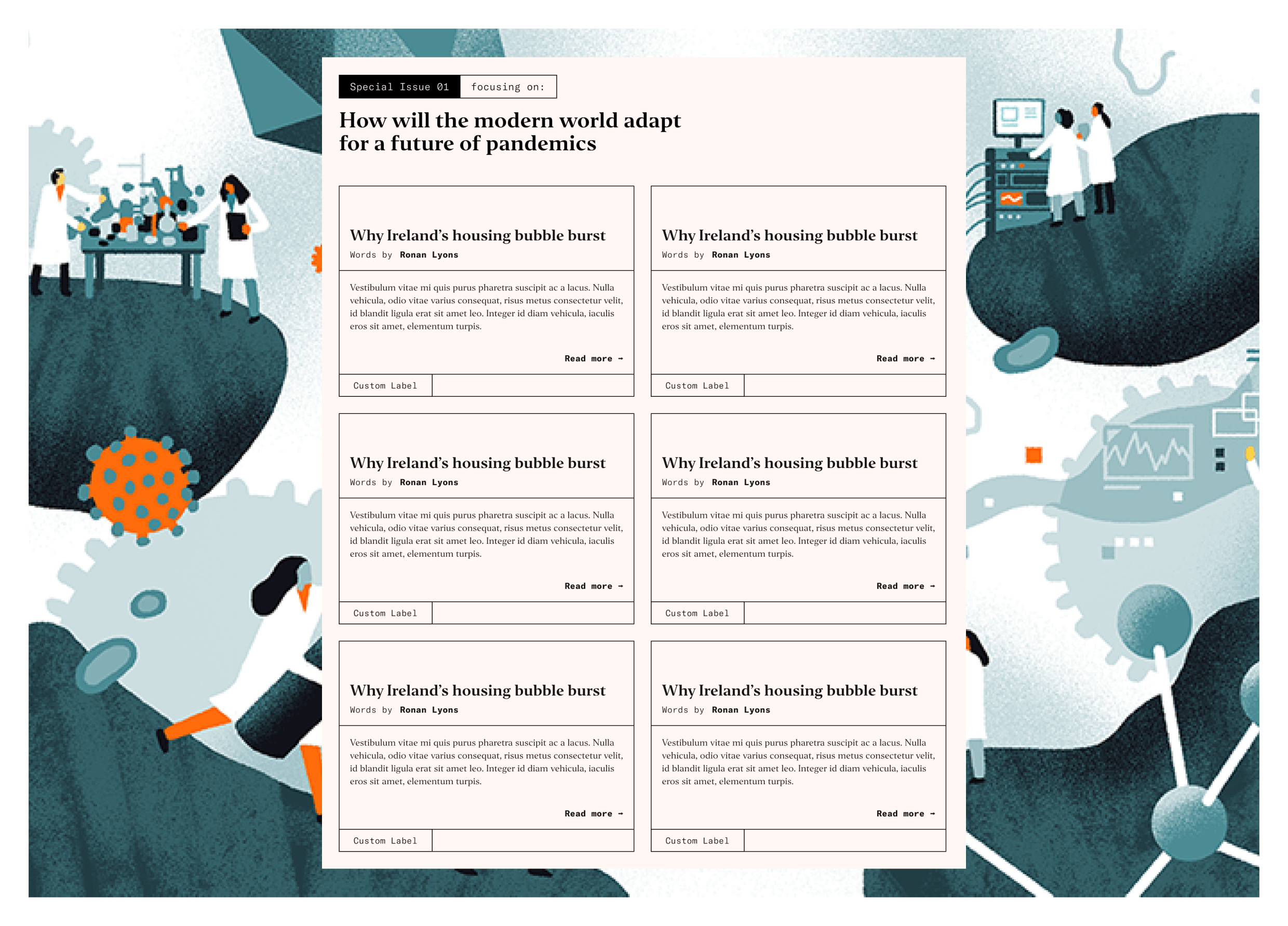 The design of the magazine aims to be visually clean, modern, and accessible, reflecting its focus on forward-thinking topics. It employs a minimalist aesthetic with a strong emphasis on readability, featuring bespoke designs for long-form articles, interviews, films and insights from experts in various fields. Works in Progress utilises simple layouts with a focus on typography to make complex ideas easier to digest.